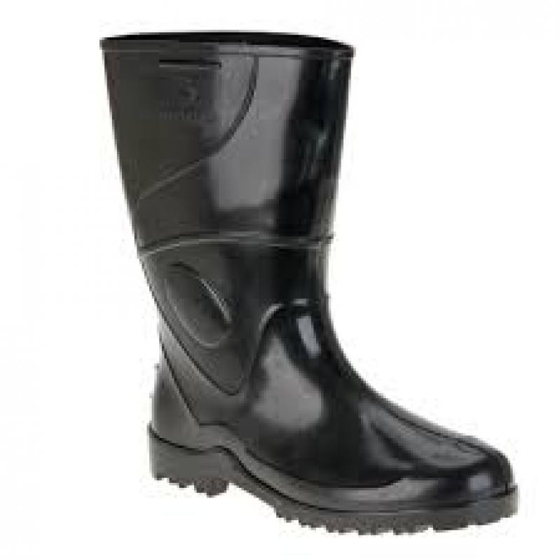 Calçado ocupacional bota cano médio, tipo C, classe II, impermeável. Confeccionada em material polimérico PVC (policloreto de vinila) injetado na cor branca com sola na cor branca, preta com sola na cor preta